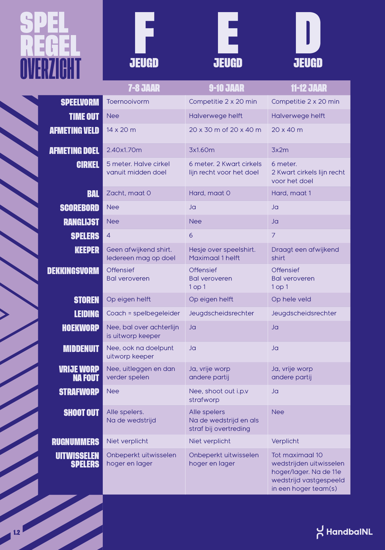 Hier vindt je infographic met het spelregel overzicht voor de F, E en D jeugd.